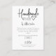 Este design bonito e caseiro é perfeito para o seu negócio. Ele apresenta o slogan "Feita à mão com amor", um coração bonito desenhado à mão, um obrigado que você envia, e informações de contato com um código QR no verso para que seus clientes façam a varredura para se conectarem ao seu site. Inclui tipografia escrita à mão e um esquema simples de preto e branco. ***NOTA DE DESIGN IMPORTANTE: Para qualquer solicitação de design personalizada, como produtos correspondentes, alterações de cor, mudanças de posicionamento ou qualquer outra solicitação de alteração, envie uma mensagem ao designer. Você pode até enviar uma solicitação para um design completamente personalizado e novo.