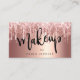 Este cartão de visita de artista de maquiagem deslumbrante apresenta uma textura metálica brilhante, brilhante e elegante, cor-de-rosa e rosa de cobre.