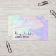 cartão de visita de maquiagem fantástica, com textura holográfica colorida e fonte elegante de caligrafia.