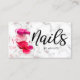 Unhas de Cartão de visita moderno com fundo de mármore em rosa, garrafas de esmalte em cor de unha em tons de rosa, script de tipografia ''Unhas' em letra preta manuscrita. Personalize com um nome na frente, título e detalhes na parte de trás. Perfeito para o seu negócio de unhas.