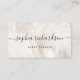Estes cartões de visitas elegantes apresentam uma mármore de champanhe como fundo. Seu nome aparece na tipografia de script manuscrito preto de tendências. Também há espaço para incluir suas informações nas mídias sociais nas costas. Um design de vidro mínimo e moderno que seja profissional e na moda. Perfeito para qualquer artista de maquiagem, cabeleireiro, salão de beleza ou trabalhador termal, ou campos como decorador de interiores ou planejador de casamento.