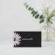Adicione um olhar na moda moderno à sua marca. Este cartão de visita tem o seu nome comercial em uma fonte de script e margarida branca em um fundo preto. As informações de contato estão na parte traseira, deixando a parte frontal à atenção do desenhar para a sua marca.