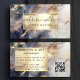 Elevem sua marca com este luxuoso cartão de visita com um design de aquarela cativante em tons azuis e roxos ricos de marinho. O design etéreo, acentuado com bobina de ouro e roteiro elegante, cria um visual sofisticado perfeito para cabeleireiros, maquiadores e outros profissionais de beleza. O quadro de ouro metálico destaca seu nome e serviços, enquanto o código QR no verso permite um acesso fácil ao seu portfólio ou às mídias sociais. Faça uma impressão duradoura sobre clientes potenciais com essa placa única e na moda.
