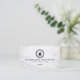 Uma design limpa e moderna de um logotipo de bótulo com seu nome ou nome comercial cria uma identidade exclusiva neste modelo de cartão de negócios. Definido em uma imagem de fundo de mármore branco. © 1201AM CREATIVE
