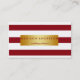 Cartão De Visita Maroon e White Chic Strips em Dourado