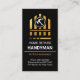 Um cobrir preto apresenta um edifício dourado com um martelo prateado no meio da remodelação. Logo abaixo, estão duas legendas, ou seja, "REPARADORES DOMÉSTICOS" e "HOMEM", que você pode mudar. Seguem-se o seu nome prestigiado e os dados de contato. No verso, no topo está o logotipo "casa de serra elétrica" que você pode usar seguido do seu nome prestigioso, dos detalhes de contato e de uma opção de slogan para divulgar seus serviços. Um cartão de na moda de excelente para um trabalhador, empreiteiro de construção para usar. #handyman #construcção #homerepair #construtor #construtor #remodelagem #handymantools #interiordesign #prédios