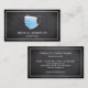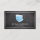 cartão de visita elegante com uma máscara cirúrgica sobre fundo de quadro negro. Adicione seu nome e detalhes de contato para criar uma primeira impressão duradoura.