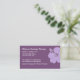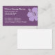 Linda flor de hibisco temida Massage and Physical Therapist modelo de cartão de negócios em tons de roxo com layout organizado que você pode personalizar online. Concebido para uma clínica independente de terapêutica ou fisioterapia.