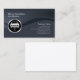 Este simples cartão de visita de mecânica automática elegante e profissional apresenta um fundo preto. Uma onda preta abanada segue da esquerda para a direita, dividindo a placa em duas seções. Um ícone circular do conector hidráulico de carro cromo fica nessa onda, no lado esquerdo da placa, enquanto seu nome e título aparecem no canto superior esquerdo e seu nome comercial e detalhes de contato aparecem no canto inferior direito. Concebidos para empresas ou profissões relacionadas com transportes, transportes, automóveis, caminhões, caminhões, transportes terrestres, transportes marítimos, logística, transportes, automóveis, reparação automóvel, mecânica automóvel, garagem, temas de motores.