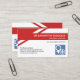 No verso, em um tema design semelhante, seu nome e nome comercial estão na coluna vermelha. No canto inferior da placa está o logotipo do sistema de saúde, seguido dos detalhes do contato e de uma opção de slogan.