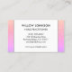 Assistentes médicos, profissionais de enfermagem certificados e cuidadores dedicados: Artesanato uma primeira impressão memorável com este cartão de visita. Uma vibrante lavagem de aquarelas cor-de-rosa e roxa enfeita o fundo, refletindo sua paixão e seu conhecimento. As matizes moles e orgânicas trazem um toque de charme, complementando perfeitamente seu cuidado compassivo. A tipografia do eterno e um layout moderno garantem um aspecto profissional e polido. Personalize com seus dados de contato um toque único e refinado que deixa um impacto duradouro nos colegas e clientes, independentemente de sua profissão.