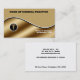 Um modelo fácil de personalizar, que tem uma linha ondulada branca e preta dividindo um fundo de ouro falso, no qual assenta um pequeno círculo preto com um ouro caduceus. Ideal para consultórios médicos, hospitais, clínicas e profissionais de saúde.