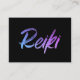 Este é um cartão de visita original e poderosa lindo do mestre de Reiki ou do Reiki Practitoner que seja certo imprimir. As cores brilhantes do rosa, da turquesa e da magenta da tipografia de Reiki estalam certamente contra o fundo preto.