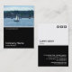 Um design modelo de cartão de negócios com uma metade inferior preta de borda branca. O design frontal inclui uma foto ou um trabalho de arte na metade superior. O mesmo tema é repetido no verso sem a imagem, permitindo espaço para outros detalhes e mais personalização. O motivo dos três quadrados usado como elemento decorativo no verso é de uma das fontes de imagem úteis de Zazzle e pode ser usado como recurso decorativo ou substituído por seu próprio logotipo ou decoração.