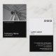 Um design modelo de cartão de negócios com uma metade inferior preta de borda branca. O design frontal inclui uma foto ou um trabalho de arte na metade superior. O mesmo tema é repetido no verso sem a imagem, permitindo espaço para outros detalhes e mais personalização. O motivo dos três quadrados usado como elemento decorativo no verso é de uma das fontes de imagem úteis de Zazzle e pode ser usado como recurso decorativo ou substituído por seu próprio logotipo ou decoração.
