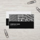Uma na moda de empresa/modelo de cartão de visita com imagem ou trabalho de arte na metade superior e uma metade inferior preta. A imagem no topo frontal também pode ser alterada. O verso tem a mesma metade preta com metade superior branca ou clara. Nome da empresa, etc. na frente, com nome e outros contatos dispostos no verso. Esta placa pode ser personalizada de várias maneiras.