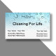Modelo de cartão de negócios de serviço de limpeza num design simples moderno com bolhas de limpeza no fundo para limpeza de escritórios, limpeza de casas, Para serviços comerciais ou residenciais e trabalhos excelentes como cartão de visita de lava-janelas.
