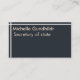 Um cartão de visita com uma design simples e minimalista que é moderna e não barata. A frente do cartão exibe o nome, o título, o endereço, o e-mail e o número de telefone. O verso do cartão tem um design simples, com apenas o nome e o título, além de linhas que dão uma impressão elegante. Essa cartão de visita é adequada para empresas que ousam parecer simples, mas não baratas.