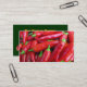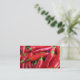 Este cartão de visita anuncia um mercado de pimenta quente e doce que também oferece salsa, verniz e picles. A frente apresenta pimentões quentes vermelhos com escarlate brilhantes. O verso tem mais pimentos e todo o texto pertinente que pode ser personalizado para se adequar à sua empresa.