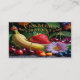Traga clientes ao mercado de seus agricultores com este cartão de fazendeiros animados que apresenta uma fotografia de frutas sorteadas, morango vermelho, cereja de banana, enterrando com sabor a excelente. Eles estão organizados todos juntos com um fundo escuro. As costas têm um design floral simples e algumas frutas e bagas azuis. Todo o texto pode ser personalizado para atender às suas necessidades individuais de negócios