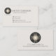 Microchip decorativo em cartões de visitas pretos de fundo redondo.