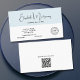 Conecte-se com esses cartões de visitas na moda que apresentam suas informações e logotipo na frente e um código QR para digitalizar para qualquer endereço de URL na parte traseira. Altere as cores com o botão "Editar usando ferramentas de Design". Personalize para ser exclusivamente seu.