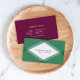 Cartão de visita moderno com um design geométrico em camadas verdes com um centro branco na frente e um lado roxo sólido. Esta cartão de visita é ideal para várias profissões, como designer de interiores, planejador de eventos, consultor, escritor, blogueiros, blogueiros, etc.; qualquer pessoa que queira uma maneira de deixar as pessoas que encontram na vida real sabe como encontrá-las e seu trabalho/portfólio online e nas redes sociais. Personalize-o substituindo o texto do marcador de posição. Para obter mais opções, como alterar a fonte e seu tamanho/cor ou o espaçamento entre letras, clique no botão "Personalizar". *Observe que a Marca d'água do Zazzle que aparece na visualização de zoom NÃO aparecerá no produto impresso final. © Rosewood e Citrus
