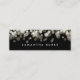 Cartões de visitas elegantes e quentes em um mini tamanho que economiza papel apresentam luzes brancas e de champanhe em um fundo preto nítido, com modernas letras brancas. Adicione as informações de contato do seu cheio à parte traseira. Uma escolha única e elegante para qualquer ocupação; exemplo mostrado para planejadores de eventos.