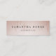 Cartões de visitas elegantes e quentes em um mini tamanho que economiza papel, apresentam uma inscrição negra clássica em um fundo cor-de-rosa pincelado, enfeitado com fios de luzes falsas de cordas de folhas de rosa douradas. Adicione as informações de contato do seu cheio à parte traseira. Uma escolha única e elegante para qualquer ocupação; exemplo mostrado para estéticos.