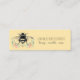 Uma abelha delicada, desenhada à mão, com mel floral rosa e verde, artesanato mini cartão de visita num fundo amarelo-nádegas, para um fabricante artesanal de mel, como mel, velas e sabão. Personalizar para o seu tipo de produto. As informações de contato estão na parte traseira da placa.
