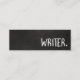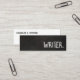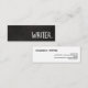 Cartão de visita fino com escritor em fonte manuscrita em fundo de quadro. Escreva o seu nome e informações de contato no verso.