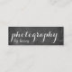 Os cartões de visitas perfeitos para o profissional são certo aqui! Estes cartões de visitas caracterizam um fundo preto do estilo do quadro, na parte dianteira e na parte traseira de cada cartão. O texto é imprimido no branco. Estes cartões são projetados como cartões para um negócio da fotografia, mas todo o texto é inteiramente customizável. Você pode mudá-lo para serir o que negócio você tem. As caixas de texto para incorporar sua informação estão na coluna no lado direito do Web page. Estes cartões de visitas igualmente caracterizam a tipografia moderna, mas se você prefere mudar as pias batismais, clicam "personalizam-no" botão, e Zazzle permitirá facilmente que você faça aquele. Estes são cartões de visitas magros, assim que a medida de cada cartão é 3,0" x 1,0", e você receberá 20 cartões por o bloco. Os cartões de visitas de Zazzle são qualidade superior do entalhe, assim que eu sei que você estará satisfeito com sua compra! Por favor mensagem mim através de Zazzle se você tem quaisquer perguntas em relação ao design. Também, sinta livre compartilhar deste produto com os todos seus amigos em meios de comunicação sociais!