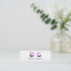 Mini cartões de visitas com uma bela ilustração pintada com aquarela. Bonito olhos roxos e sobrancelhas, olhos fechados mostrando longas e elegantes pinceladas.