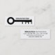 Um cartão de visita profissional, moderno, negro e branco para profissionais das indústrias imobiliárias como corretores imobiliários, agentes imobiliários e corretores imobiliários. Projetado com a silhueta principal de uma chave com cortes ao longo para ser como casas. Apresente este cartão de visita-chave aos seus clientes para que eles saibam que você pode ajudá-los a encontrar seu sonho em casa! Personalize facilmente com seus detalhes comerciais.