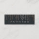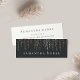 Cartões de visitas elegantes e quentes em um mini tamanho que economiza papel apresentam letras brancas clássicas em um fundo preto suave rico com fios verticais de cordas de folhas falsas de rosa de ouro em cascata a partir do topo. Adicione as informações de contato do seu cheio à parte traseira. Uma escolha única e elegante para qualquer ocupação; exemplo mostrado para planejadores de eventos.