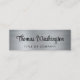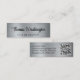 Mini cartão de visita profissional com um fundo metálico falso em prata escovado, seu nome em uma escrita ousada, na moda e seu título ou nome de empresa em uma simples tipografia moderna. No verso, introduza o endereço URL do Web site para criar um código QR pesquisável e personalizar informações de contato adicionais.