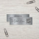 Mini cartão de visita profissional mínimo com seu nome em um script de assinatura moderno contra um fundo metálico falso de prata escovado. Adicione o endereço de URL do seu site para criar um código de QR digitalizável. No verso, adicione qualquer texto adicional (como email, números de telefone, nome firme e endereço de correspondência).