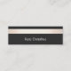 Design de cartão de visita vertical elegante, na moda, com faixas leves de folha FAUX de cobre sobre fundo preto. Isto NÃO é uma folha de ouro real - mas uma imagem. Não há brilho ou textura. Um cartão de chamada versátil para profissionais criativos e empresários. Esta versátil placa de rede também é excelente de salões de beleza, cabeleireiros, boutiques de moda, planejadores de casamento, designers de joalharia ou qualquer outro profissional sensível a imagens.