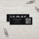 Um mini cartão de visita que apresenta fases da lua com um gradiente em tons de cinza prateada em papel escuro premium com um código QR personalizado para enviar pessoas diretamente para o seu site. Perfeito para um astrologista, instrutor de ioga ou outro curador holístico.