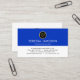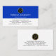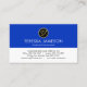 Cover features a blue and white layered design. Over at the top is an empty gold circle logo where you can place your name initials-monogram (You can use different sizes of fonts or styles to your liking). Underneath your monogram is your prestigious name and job title. Inside the white layer lies your contact details.