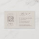 Elevate your brand's presence with this elegant and customizable business card design, featuring a soft, neutral taupe background that exudes understated sophistication. Your name takes center stage in a bold, clean font, beautifully complemented by a flowing script for your service or specialty. The reverse side offers comprehensive contact information, including a convenient QR code and social media links, all presented with a minimalist yet impactful layout for a truly refined impression.
