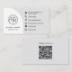 Minimalist Professional Custom Logo Icons QR Code light gray and white business card with contemporary style.
