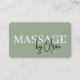 Promote your massage therapy or wellness practice with this sage green business card, designed to convey calm, trust, and professionalism. Featuring a built-in QR code, this card allows clients to instantly access your booking page, website, or contact information. The soft green tone creates a soothing, natural look ideal for massage therapists, spa professionals, bodywork practitioners, and holistic wellness providers. Clean, print-ready layout ensures clarity and a polished presentation.