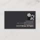 Uma cobrir de cinza destacada por uma lâmpada elétrica azul criativa. Ao lado dele está o seu nome prestigiado com os contatos para sul, perto da base. Em direção à parede direita está uma opção de slogan para você anunciar seus serviços. Um logotipo preto está disponível para uso na parte superior da placa, juntamente com o nome comercial.