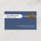 Um cobrir azul é acentuado por uma coluna branca arredondada perto do topo. Aqui está seu prestigioso nome e cargo com um logotipo de mão de obra dourada na direção oposta. Para a base estão o nome comercial e uma opção de slogan para divulgar seus serviços.