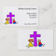 Ilustração lunática dos desenhos animados bonitos de uma menina e de um menino que sentam-se ao lado de uma cruz gigante. Imagem disponível em vários presentes e produtos. Sofra as crianças pequenas para vir até mim, e proiba-as não: para de tais é o reino de deus - marque 10v14