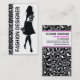 Moça designer de moda com cinza preta e cartão de visita preto branco-cola, com impressões que chamam a atenção, apresentando uma moderna moça-modelo em preto, com a tampa do panteão/leopardo sem fio e bolsa em preto e cinza sobre fundo branco, uma faixa de fochsia magenta e uma banda padrão. Um na moda, elegante, cartão de visita de moda para um designer de moda, consultor, proprietário de butique, um modista ou para um desfile de moda e qualquer área da indústria de moda. Alguns elementos são cortesia de vectorportal.com.