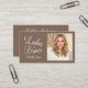 Cartão De Visita Mocha Brown Cream Script Photo Lashes and Brows