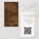 A placa de exibição de brinco moderno apresenta ilustração em folha dourada gingko sobre fundo castanho escuro com texto contemporâneo branco na frente e texto de cinza com código QR personalizável para seu site ou mídia social na parte traseira.