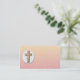 Bonito arte vitoriana de uma cruz feita de rosas cor-de-rosa e flores margaridas brancas sobre um oval branco de fundo falso canvas. Clique em Personalizar para selecionar suas fontes, adicionar seu texto e até salvar seu design para mais tarde.